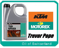 Motorex Top Speed 10/40 4 L Synthetic motor oil Jaso ma api sl,si,sh,sgTOP SPEED 4T 10W/40 Modern synthetic high-performance engine oil for 4-stroke motorcycles. With this MC (Molecular Converted) technology highquality base oils are refined chemically and enhanced to achieve the performance level of fully synthetic oils.excellent wear protection lowers oil consumption ideal for wet multi-disc clutches (JASO MA approval) Specification:JASO MA T903:2006; API SL, SJ, SH, SG Sizes:1l, 4l, 25l, 60l, 200l